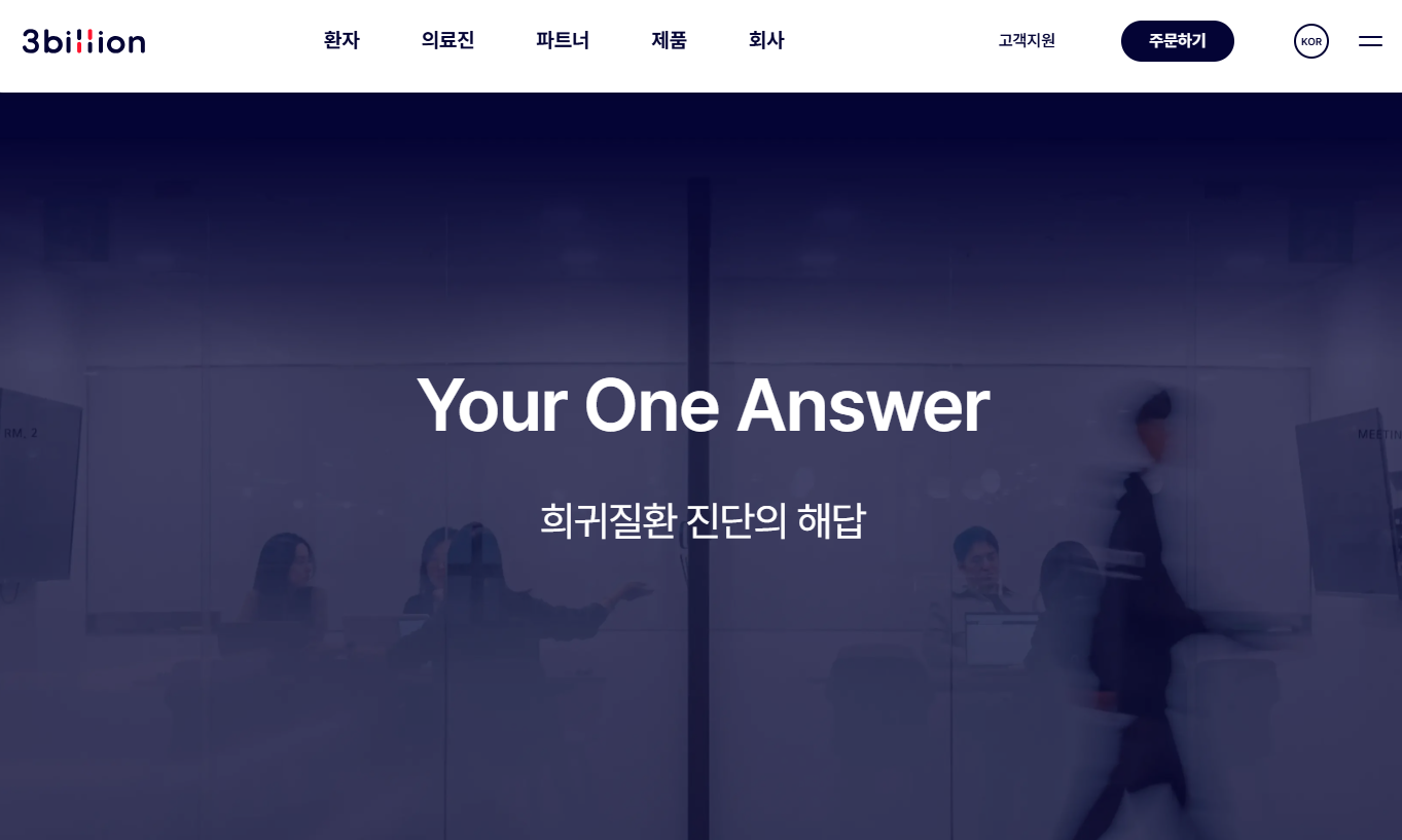 AI 기술과 의료 진단을 결합한 혁신 기업 쓰리빌리언은 2016년에 설립된 희귀유전질환 진단 전문기업입니다. 10만개의 유전변이를 5분 이내에 99.4% 정확도로 해석할 수 있는 독자적인 AI 기술을 보유하고 있습니다.