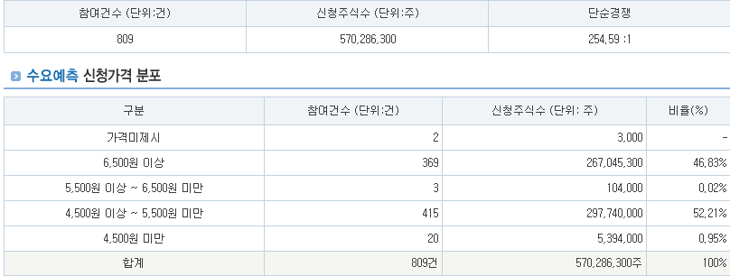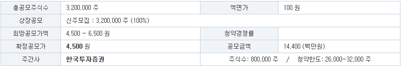 | 공모희망가 | 4,500원 ~ 6,500원 |