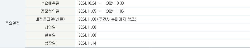 | 청약일 | 2024.11.5(화) ~ 11.6(수) |
