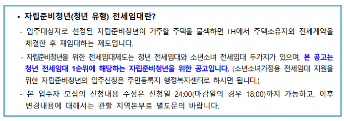 | 대상자격 | 무주택자, 보호종료 5년 이내 자립준비청년 |