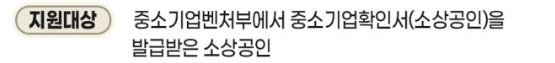 | 지원 대상 | 중소기업벤처부에서 중소기업확인서(소상공인)를 발급받은 소상공인 | 발급에 시간 소요, 미리 준비 필요 |