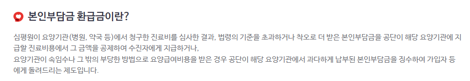 | 건강보험 본인부담상한제 | 일정 금액 이상 의료비 지출 시 초과분을 환급해주는 제도 |