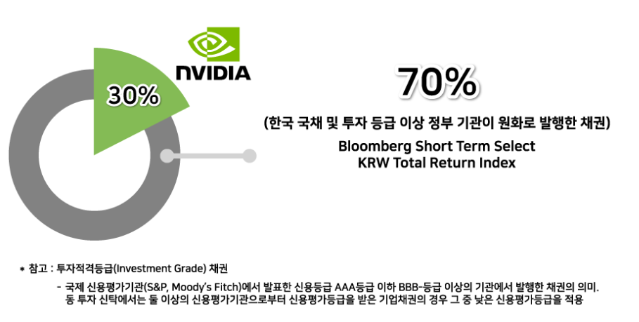 즉, 이 ETF는 엔비디아 주식에 30%, 국내 우량 채권에 70%를 투자함으로써 엔비디아의 성장에 따른 수익을 추구하면서도 채권 투자를 통해 안정성을 도모하는 전략을 취하고 있습니다.