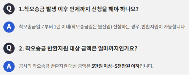 | 이용 대상 | - 착오송금일로부터 1년 이내 신청 - 5만원 이상 5천만원 이하의 금액 |