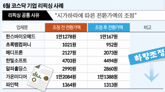 - 리픽싱 뜻 의미: 전환사채의 전환가액을 조정하는 것