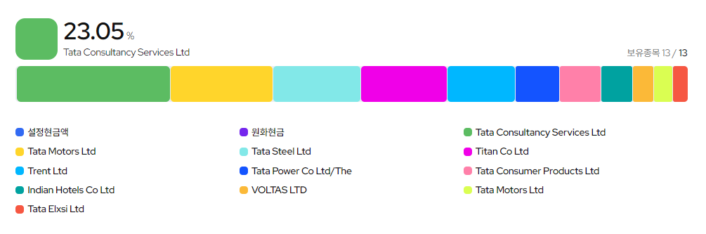타타 그룹 계열사 중에서도 IT서비스 부문 1위 타타컨설턴시서비스를 비롯해 타타모터스, 타타스틸 등 시가총액 상위 10개사에 집중 투자하고 있습니다.