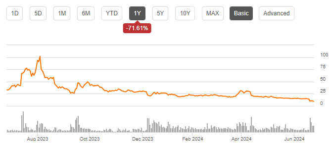 지난 1개월간 주가 수익률은 1,678.66%로, S&P 500 지수를 크게 상회했습니다. 하지만 이는 최근 발표된 30대 1 역주식 분할 결정에 따른 일시적 현상일 가능성이 높습니다.
