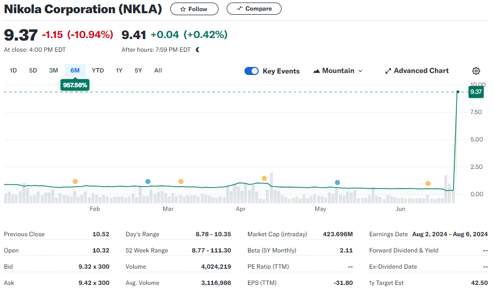 니콜라의 현 시가총액은 4.76억 달러에 달합니다. 2015년 설립 이후 2020년 6월 4일 나스닥 시장에 입성했습니다.