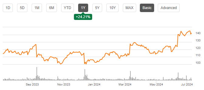 | 1년 Price return | 23.96% (S&P 500: 28.07%) |