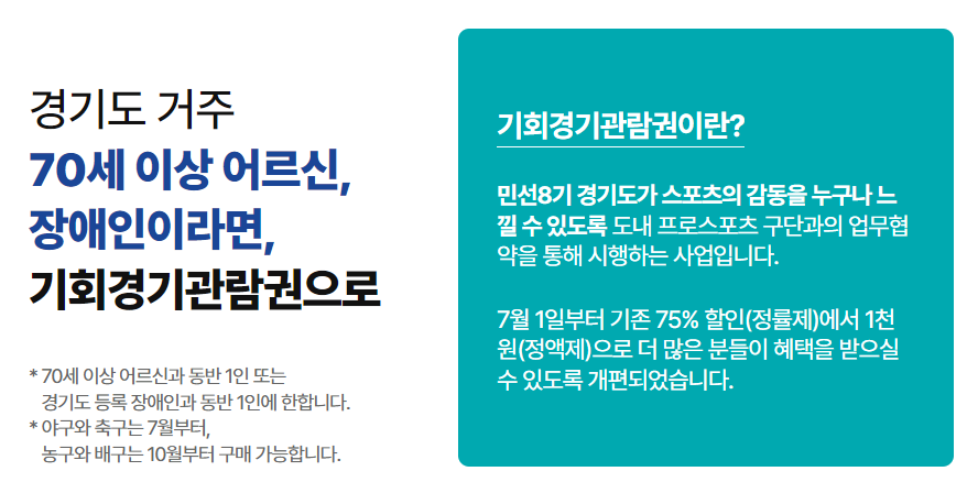 - 경기도 소재 프로스포츠 구단의 홈경기 입장권을 1,000원에 구입 가능