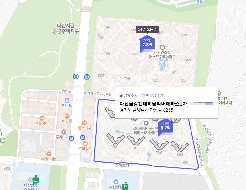 다산신도시 금강펜테리움 리버테라스 입지 환경