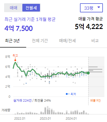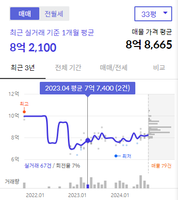 현재 이 아파트의 시세는 8억원 주변에서 형성되어 있습니다.